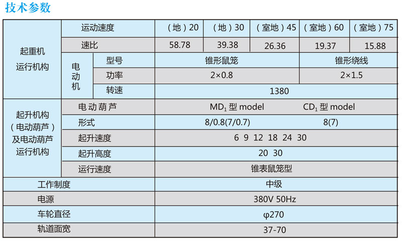 LD型具有結構合理,整機剛性強的特點。整機與CD1型、MD1型電動葫蘆配套使用,是一種輕小型起重機械。起重量為1-32T,跨度為5.5-35.5米,工作級別為A3,工作環境溫度為-25℃--40℃。