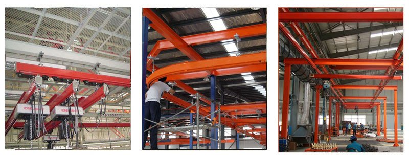 KBK 柔性起重機(jī)系統(tǒng)廣泛應(yīng)用于:汽車工業(yè)、造船工業(yè)、電子裝配、食品加工、機(jī)械制造、倉庫等各行業(yè),覆蓋從生產(chǎn)加工、裝配到維修服務(wù)以及倉庫等各類物料起吊搬運(yùn)的場(chǎng)合。特別適應(yīng)于設(shè)備稠密、短距離吊運(yùn)、作業(yè)頻繁的生產(chǎn)線上使用。